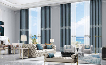 把窗簾放在窗簾架上,利用設(shè)備自帶120度高溫蒸汽對織物進(jìn)行均勻的高溫蒸燙。